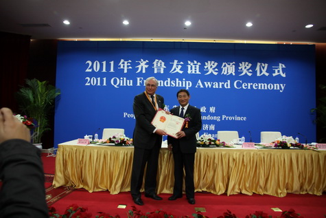 16 листопада 2011 р. Губернатор провінції Шаньдун Китайської Народної Республіки (КНР) вручив почесну нагороду Народного Уряду провінції директору Інституту біохімії ім. О.В. Палладіна НАН України, академіку НАН та НАМН України Сергію Васильовичу Комісаренку (фото 1). Провінція Шаньдун, населення якої складає 100 млн. осіб, має власну Академію наук та Академію медичних наук і відповідні науково-дослідні інститути із сучасним устаткуванням. Одним з пріоритетів економіки і промисловості провінції є фармацевтична промисловість, яка є чи найпотужнішою у КНР. Кожен рік Народний уряд провінції Шаньдун нагороджує своєю найвищою нагородою, яка має назву «Нагорода Дружби Qilu» (Qilu – Чі і Лу – це назва двох древніх царств, що були на нинішній території Шаньдуні), декількох іноземних експертів з різних країн світу, діяльність яких найбільше сприяла економічному і соціальному розвитку провінції (фото 2).